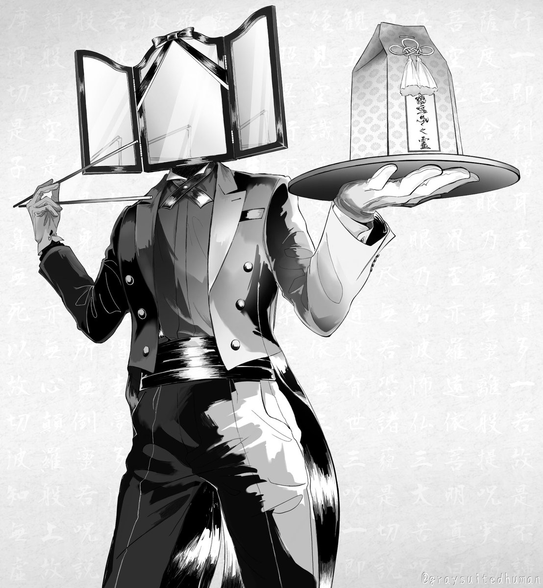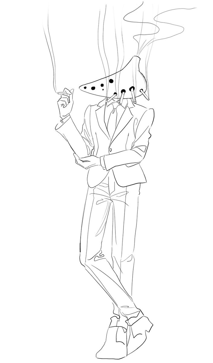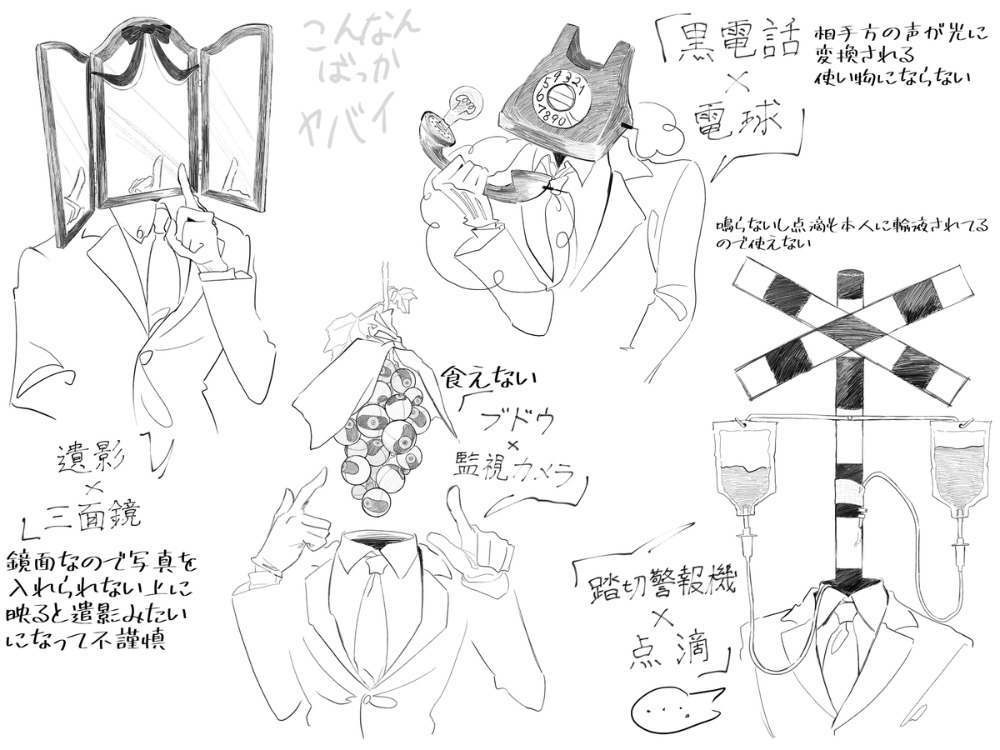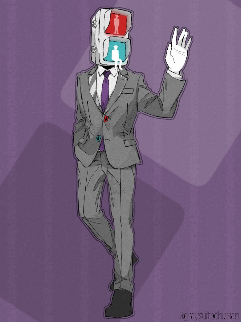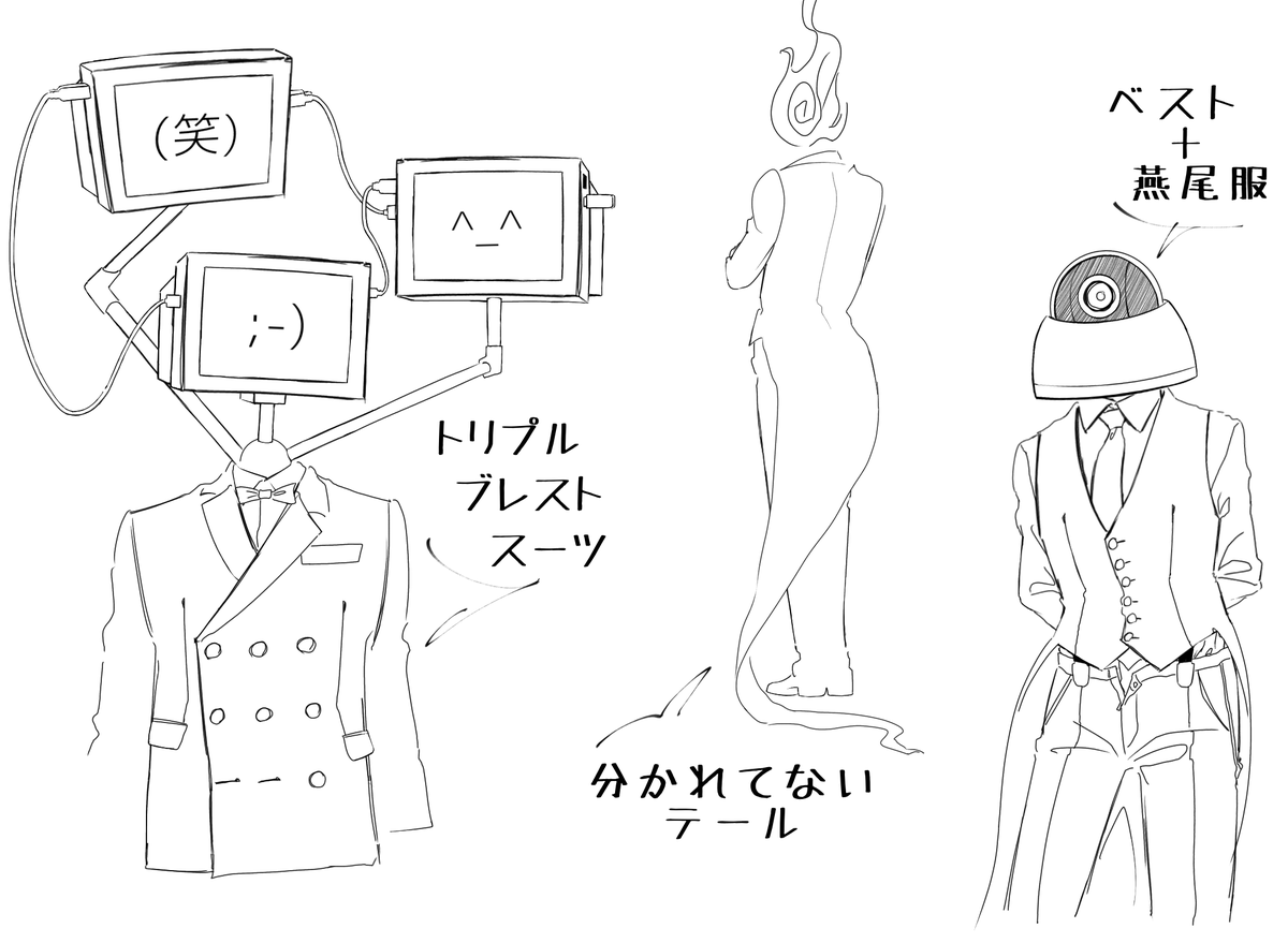 破欝(はうつ)と申します。異形頭とスーツが好きで、 「多様な頭部の異形頭にそれぞれ最も似合うスーツを着せる」 をモットーに絵を描いています。