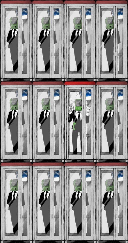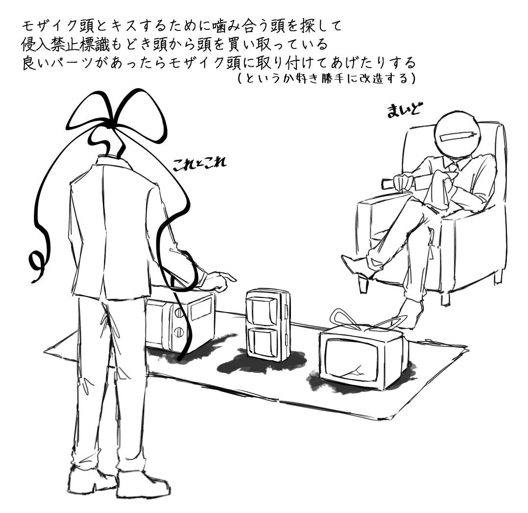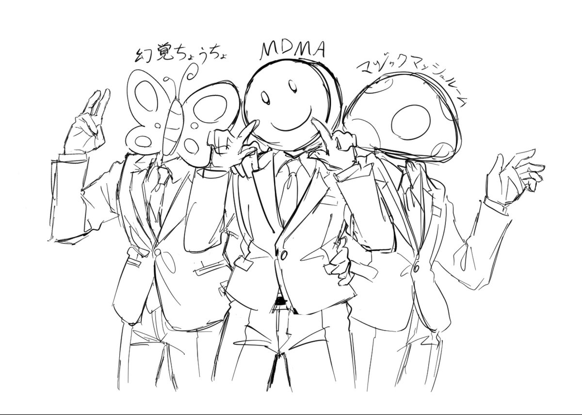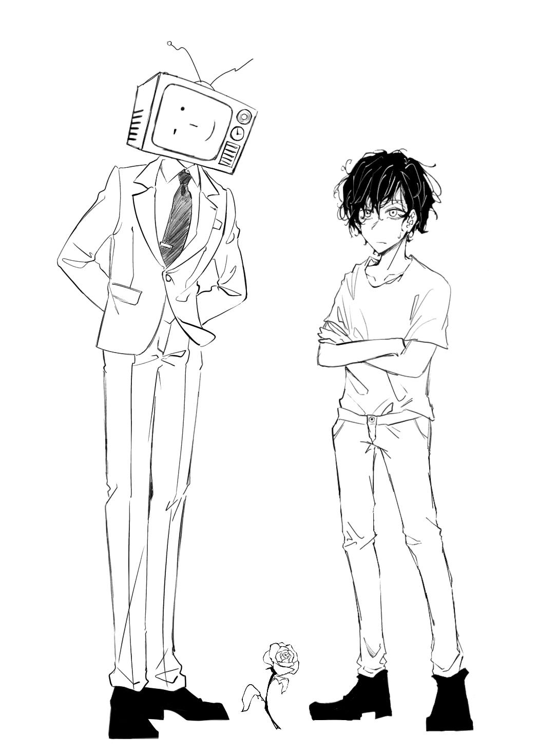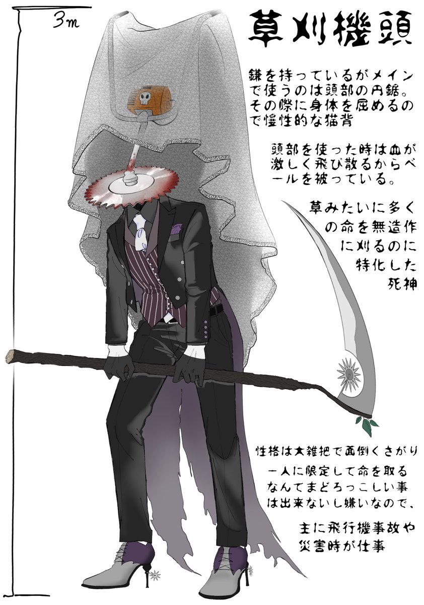 破欝(はうつ)と申します。異形頭とスーツが好きで、 「多様な頭部の異形頭にそれぞれ最も似合うスーツを着せる」 をモットーに絵を描いています。
